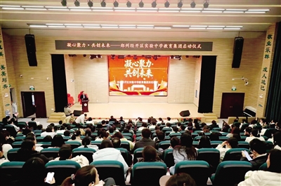 仪式上宣读了《郑州经开区实验中学教育集团办学实施方案》。方案以“共绘春和景明,奔赴星辰大海”为发展愿景,系统规划了包括深化联合教研、共建课堂实践、统筹师资培训、优化评价体系及加强育人协作在内的一系列举措。活动现场,与会领导共同为“郑州经济技术开发区实验中学教育集团”揭牌。